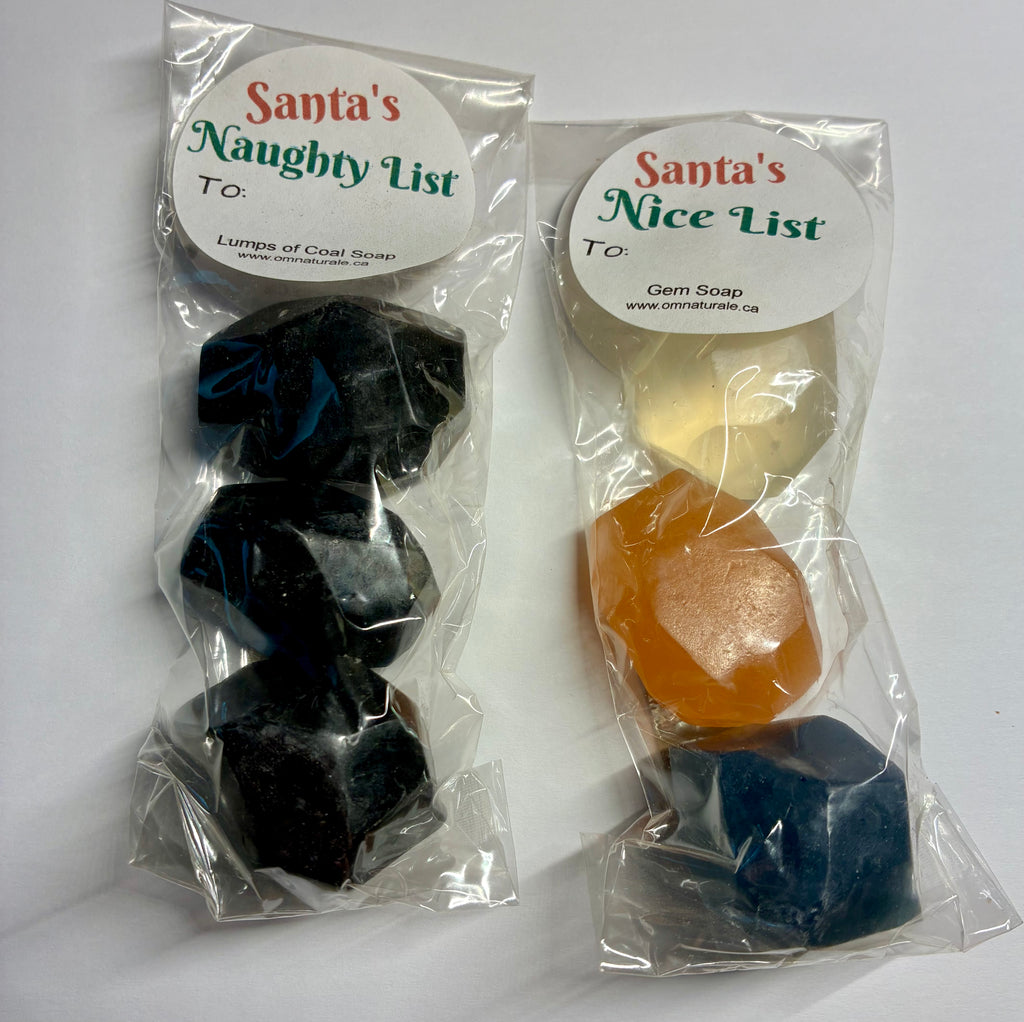 These fun little soaps will make the holiday fun for everyone! Choose between Santa's Naughty List Coal Soaps or Santa's Nice List Gem's Soaps to surprise loved ones this holiday season.